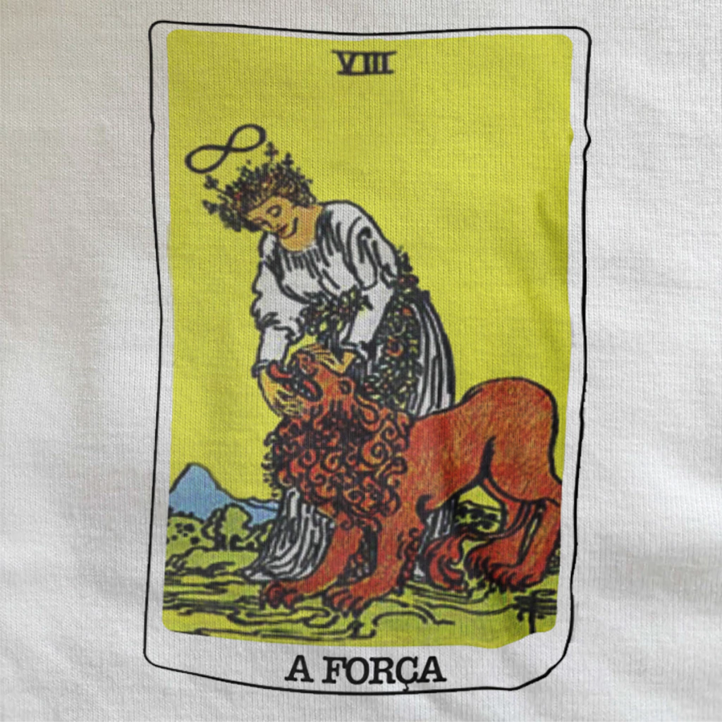 A Força é a representação do equilíbrio entre poder e compaixão, coragem e paciência. É a carta que nos lembra do poder interior que temos para superar qualquer desafio. Vestir essa camiseta é carregar consigo a energia da autoconfiança e da determinação, mantendo o coração leve mesmo nas situações mais difíceis. Mostre ao mundo sua força com gentileza e firmeza.
