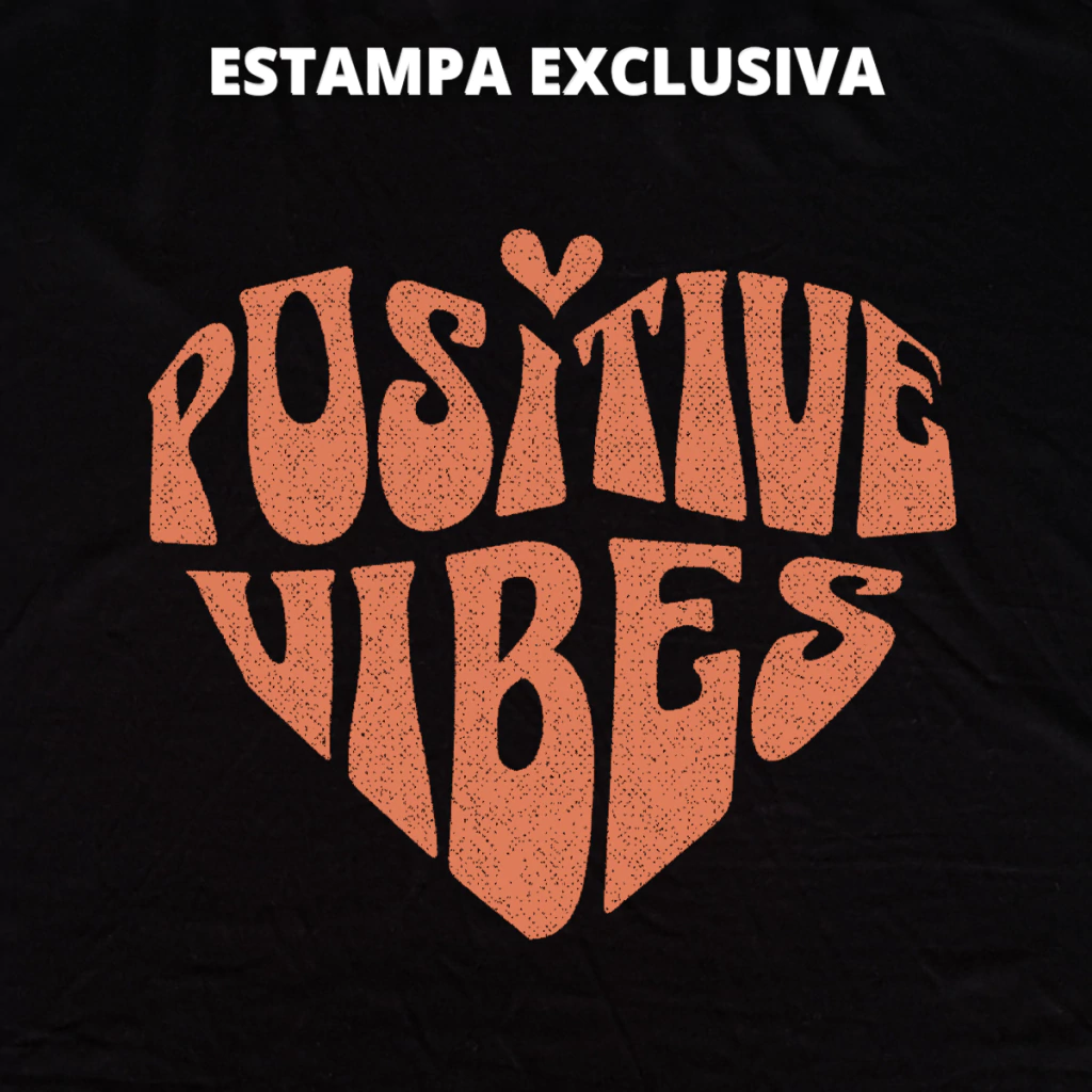 Espalhe boas vibrações por onde for! Nossa camiseta "Positive Vibes" é um convite para ver o lado bom da vida, mantendo a energia elevada mesmo diante dos desafios. Com positividade e leveza, tudo flui melhor. Espalhe a vibe pelo mundo!
