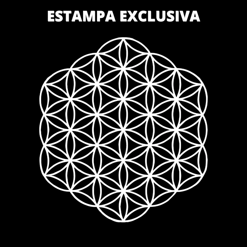 CAMISETA T-SHIRT FLOR DA VIDA - A geometria sagrada Flor da Vida é considerada a Matriz do Universo. O simples ato de contemplar a sua formação o faz entrar em alinhamento consigo mesmo, logo com o organismo universal, pois você é uma célula deste grande organismo chamado Universo. O código da Flor da Vida contém toda a sabedoria similar ao código genético contido em nosso DNA. Cada molécula de vida, cada célula em nosso corpo humano, cada desenho na natureza conhece esse padrão geométrico e por ele é construído.