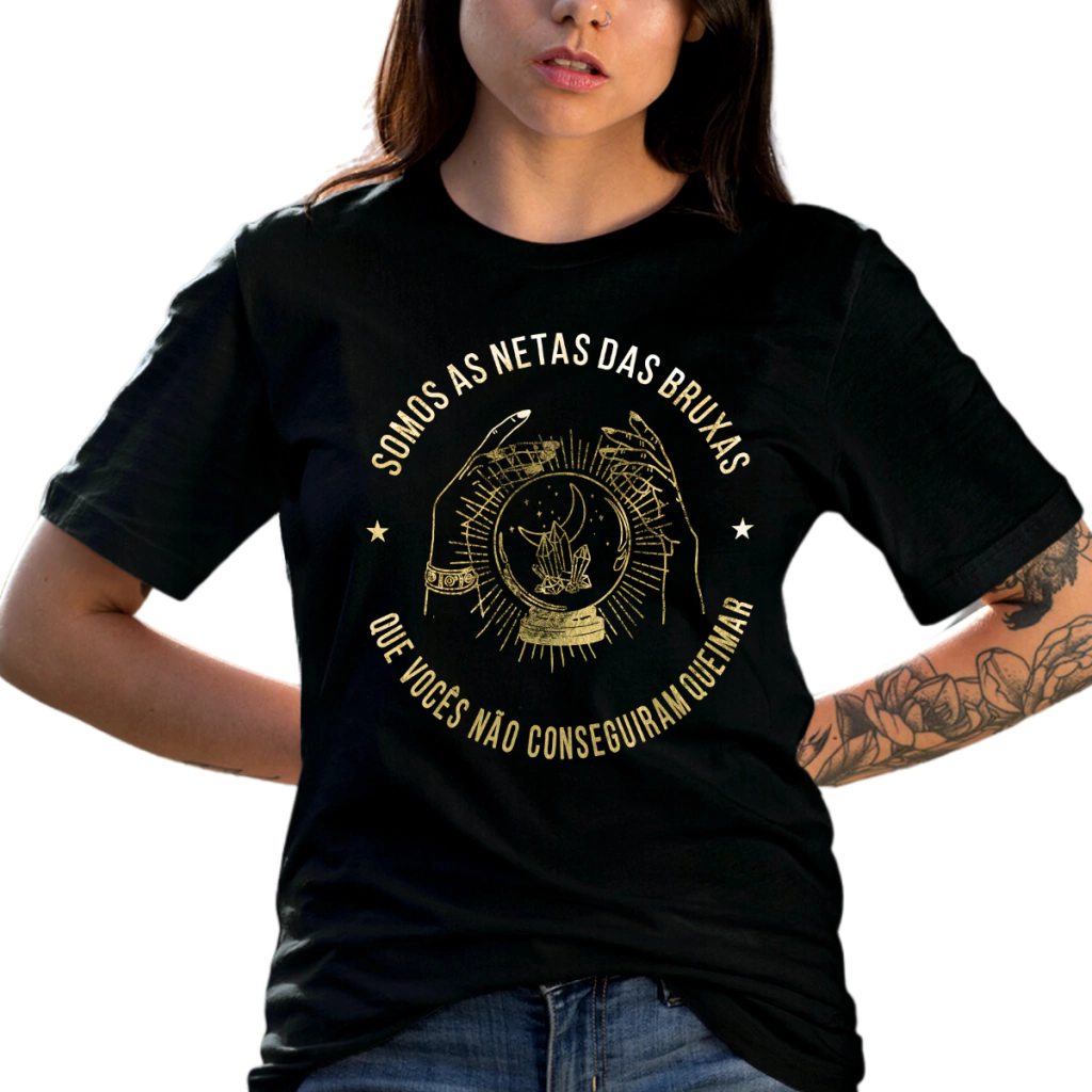 CAMISETA T-SHIRT SOMOS AS NETAS DAS BRUXAS METALIZADA OURO